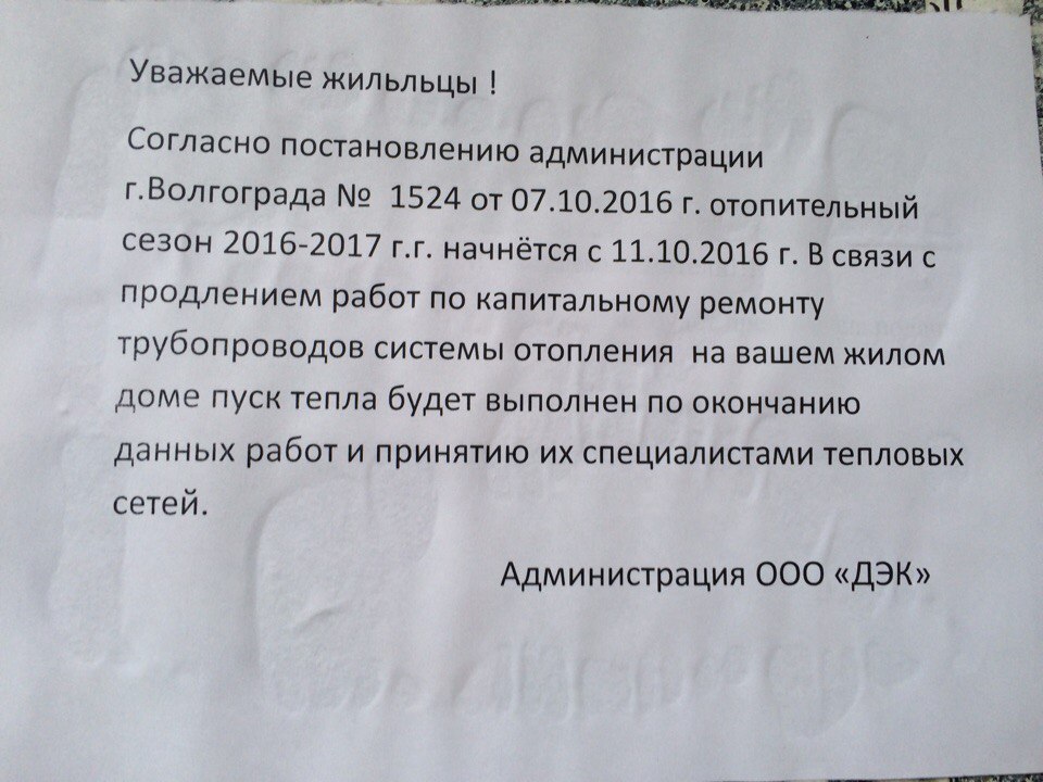 Если завтра на улице будет минус, то есть шанс замерзнуть. Когда в нашем доме начнется отопительный сезон не ясно. В подъезде просто срезаны все трубы отопления. Зато в доме с ремонтом будем жить. Аэропорт, 17.