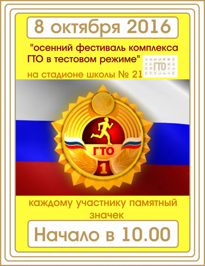 Приглашаем всех испытать свои силы. 8 октября. В 10.00, школа №21. Попробуй сдать нормы ГТО!