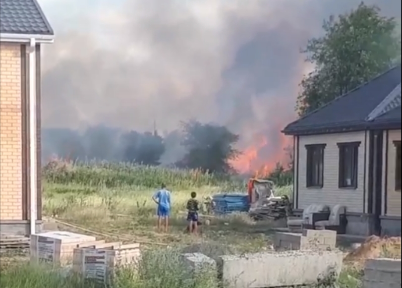 А вот так горит этот камыш в 100 метрах от домов