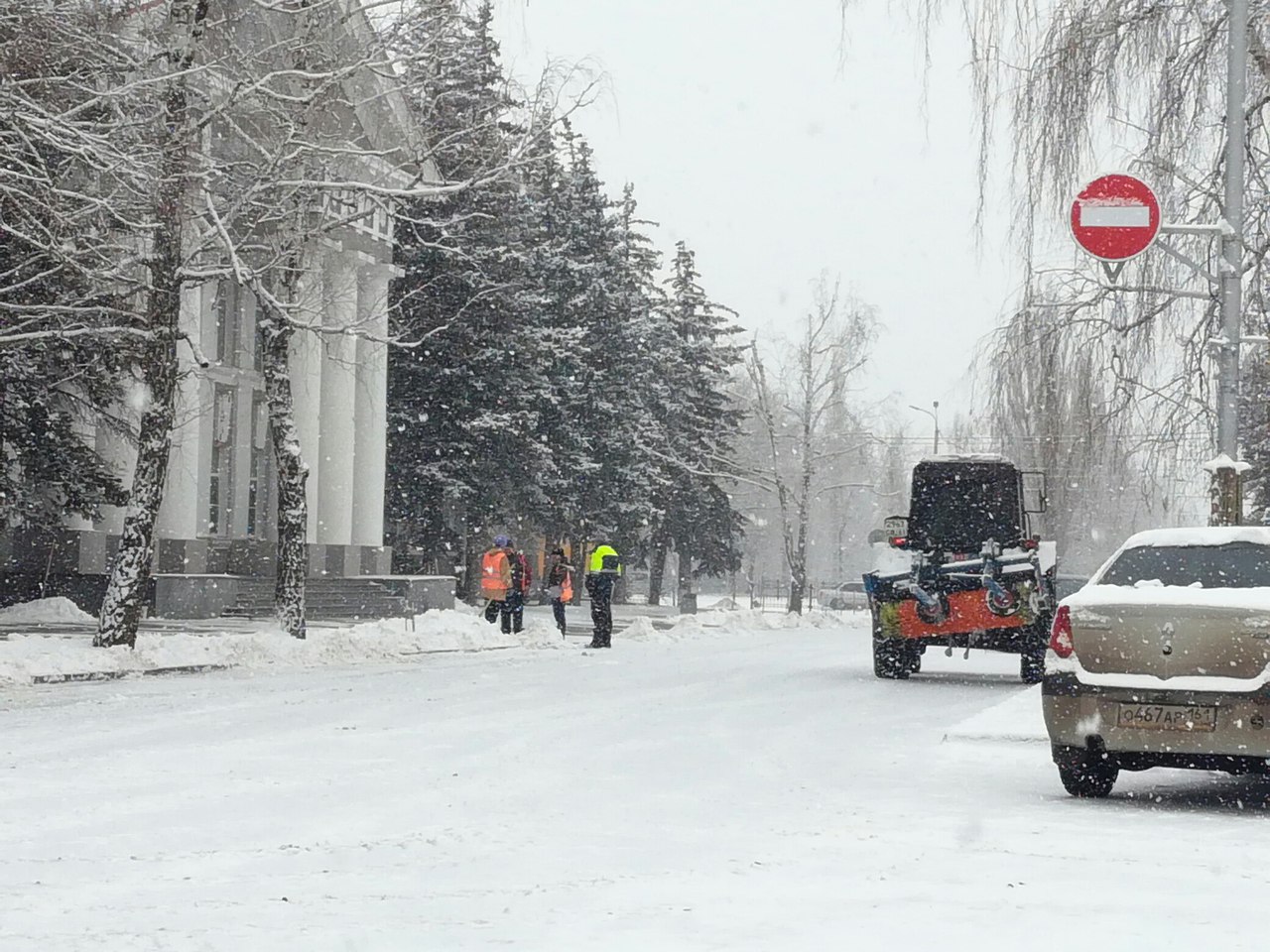А вот у Администрации, как обычно, чистят с особым рвением. Интересно, а на каком основании трактор заезжает под «кирпич», ведь он такой же участник дорожного движения, как и все остальные, что дает ему право отступать от требований Правил?