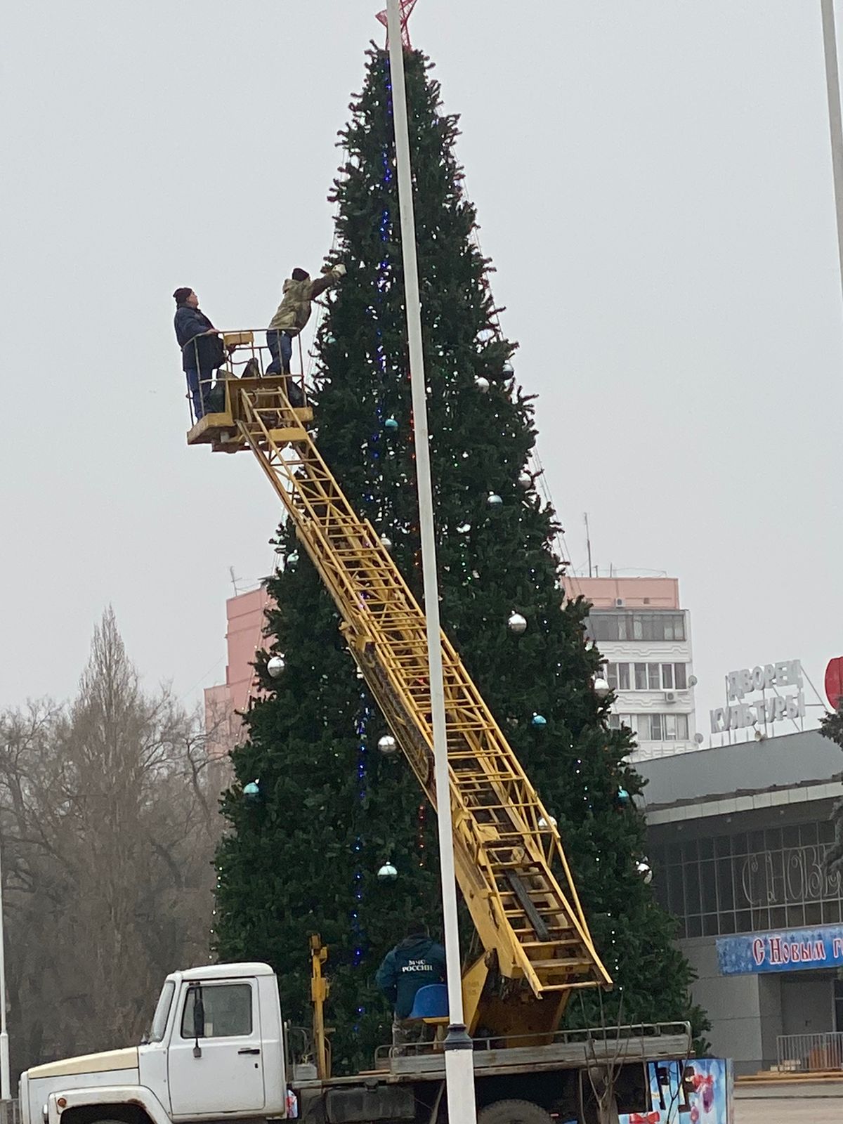Вот установили на площади перед ДК “Октябрь” елку. Но почему она выглядит так позорно и что красивого вообще в ней нашли? Самые дешевые и выгоревшие елочные игрушки повесили. Неужели нельзя оформить красивее? В Морозовске каком-нибудь и то, наверное, красивее ёлка новогодняя.