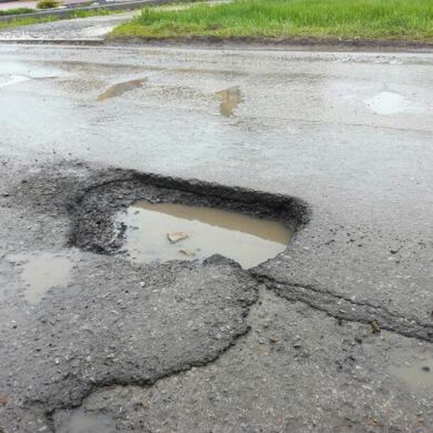Вот такие ямы поджидают тех, кто решил проехаться по переулку Озерному в Стросоленом. Тут вполне можно оставить подвеску, но никто и не думает их заделывать.
