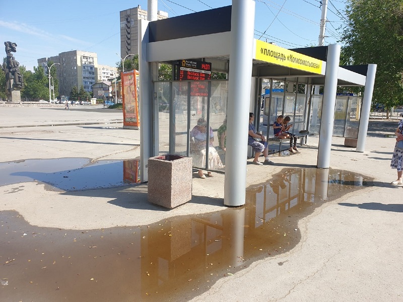 Все привет! Заметили одну странность на остановке у «Комсомольца». А друг из Москвы заметил. Ему стало смешно. Говорит, в Москве так не делают. Павильон поставили так, что после каждого дождя остановку топит. Неужели нельзя было предусмотреть этого, когда павильон только устанавливали?