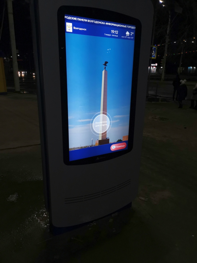 Решил коснуться на сенсорном экране этой великолепной информационной панели, кнопки "Коснитесь для старта", но сенсор абсолютно не реагирует на нажатия. Сенсоры не работают на нескольких информационных панелях в разных частях города. Видно их установили для красоты...