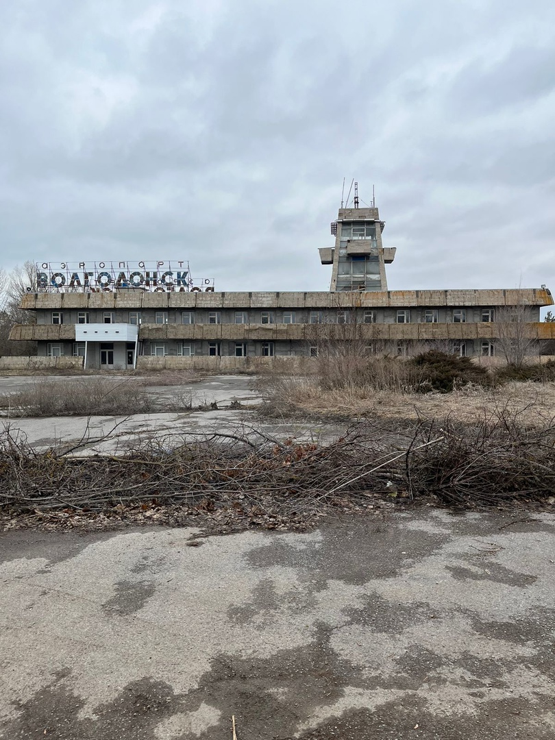 Вот интересное фото. Это видимо Чернобыль? Зона отчуждения? Нет - это наш любимый аэропорт и похоже была гостиница возле него. Интересно, что отделан подъезд сайдингом. Это что, начало реставрации? Ну а ещё интересный факт, что дорога к аэропорту, которая делалась в лохматых годах и не разу не ремонтировалась, выглядит оочень прилично. Получше многих дорог в городе.