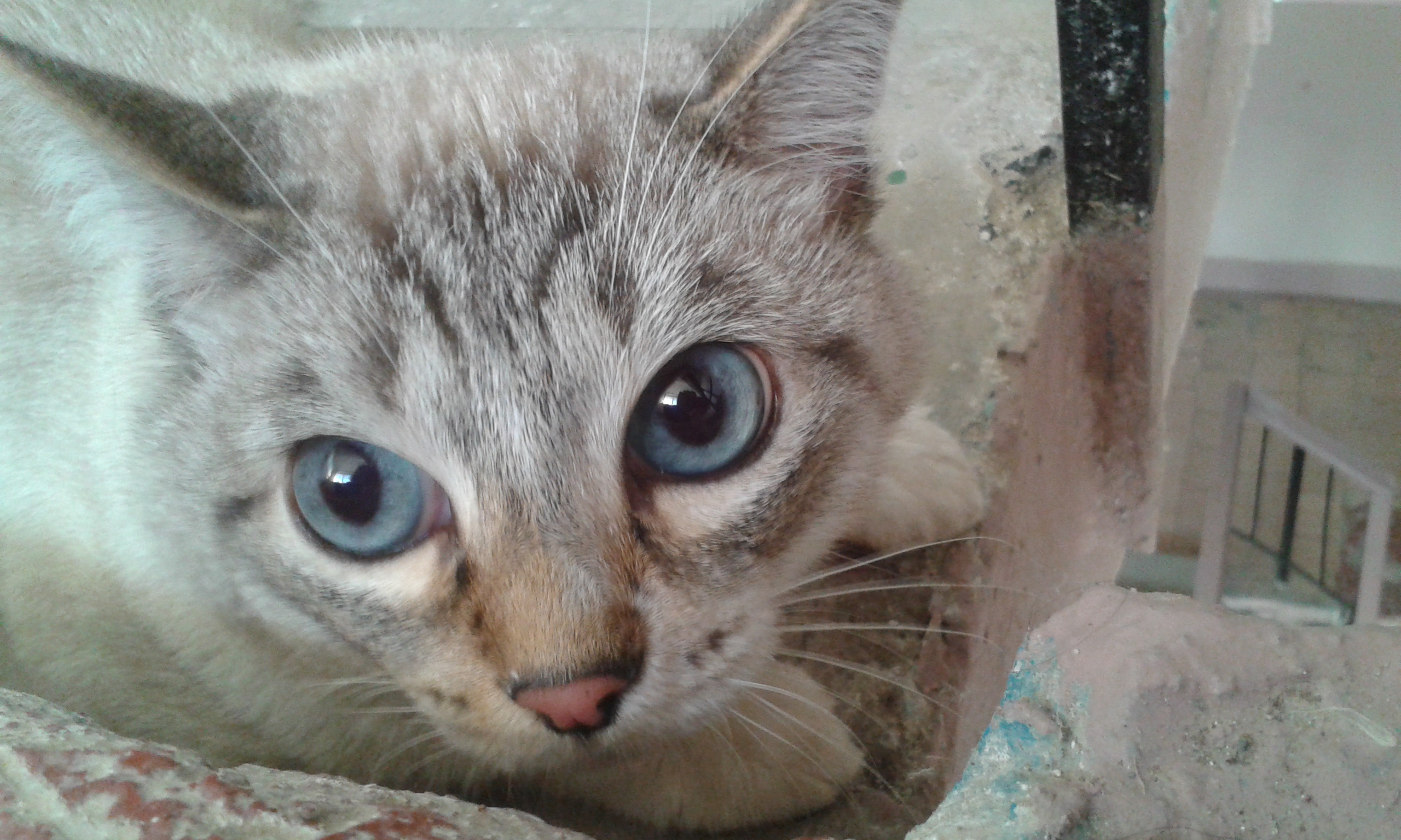 28.06 В первом подъезде Мира 31 между 4-м и 5-м этажами найден кот. Домашний. Сильно напуган. Очень спокойный. Дается в руки. Глаза красивущие. Ярко-синие. Окрас молочно-кофейный. Видимо убежал. Хозяева отзовитесь!!!