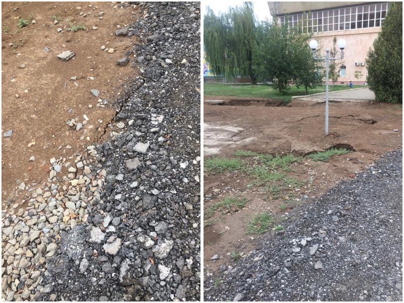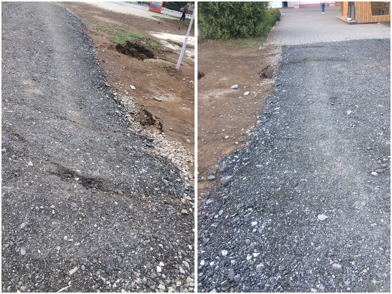 После дождя дорожка к спортивному комплексу «Олимп» немного просела и потрескалась. Наверно опять провалится... На фото не так видно, как на самом деле. Или это нормально?