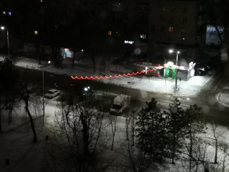 Новогоднее убранство не отключено