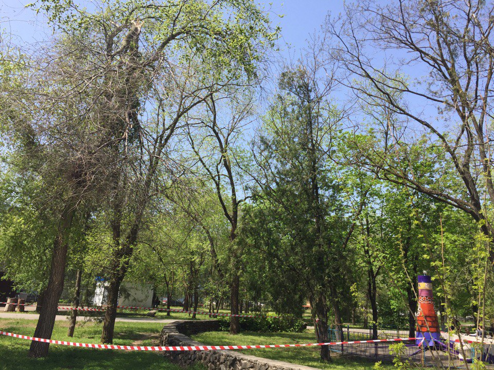 Опасное дерево возле аттракционов
