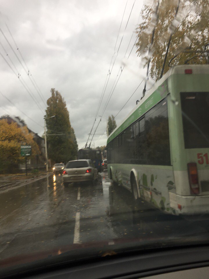 Сломавшийся троллейбус перегородил дорогу на Первомайке! Всем машинам и другом транспорту пришлось обходить его по "встречке"!