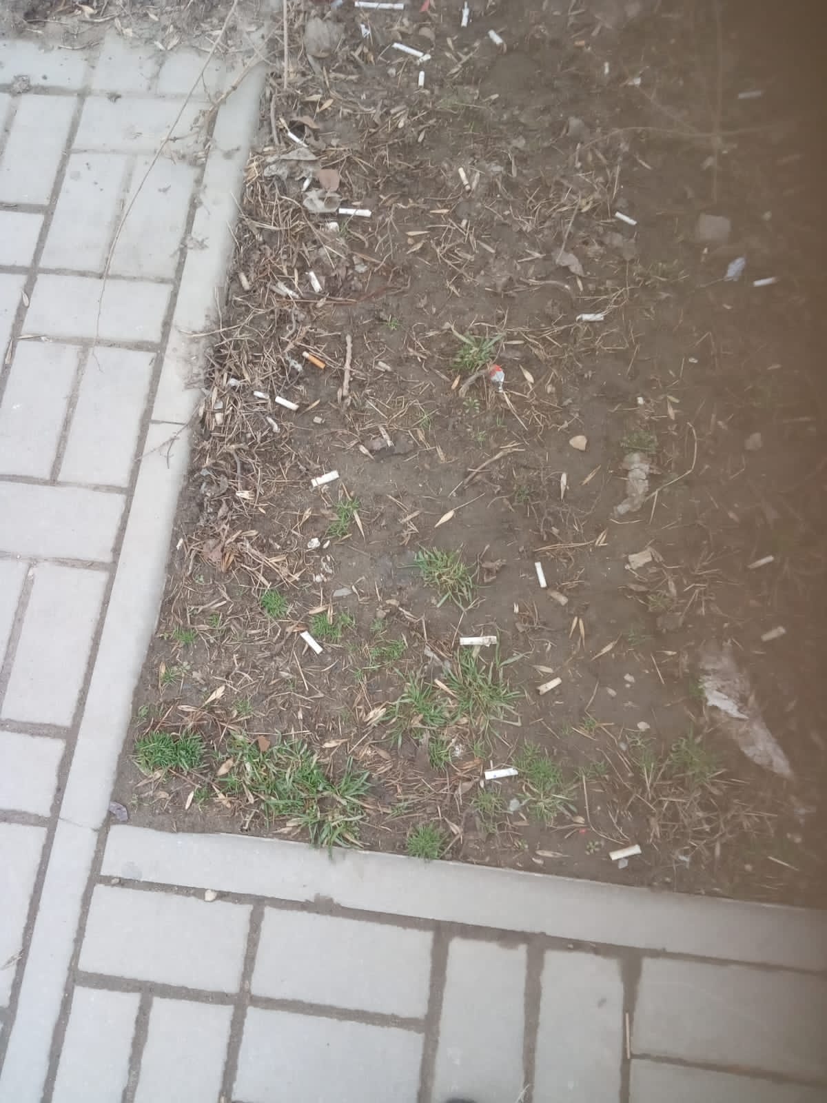 Почему дворники не убирают мусор? Россыпь окурков на газоне, возле центрального входа в «Магнит» в районе остановки «Звездная». Кусты просто заросли мусором. Почему не убирается мусор на улицах и газонах? Город весь, как помойка, особенно квартал В-5.