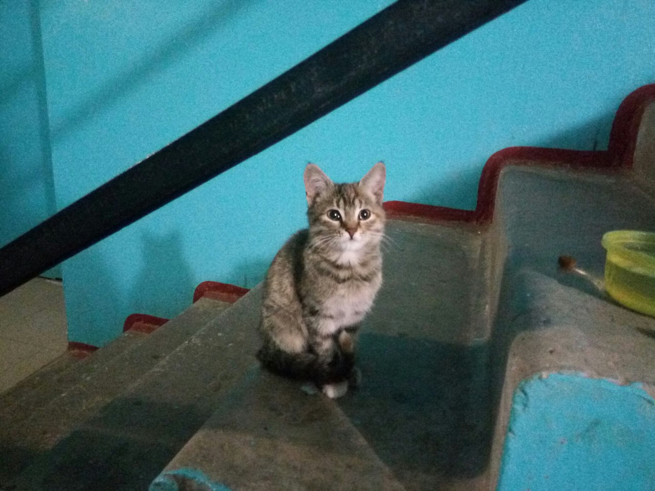 Выкинули котёнка, на вид ему около двух месяцев . Сами б приютили, да у самих кошка и пёс. Приютите, пожалуйста. Котёнка можно забрать по адресу Энтузиастов 20, сидит на 3 этаже.