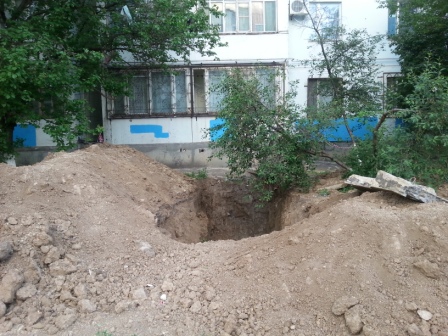 До 2 июня после испытаний труб не могли включить горячую воду по ул М. Кошевого 36. Порыв нашли, отремонтировали трубу, а вот яму забыли зарыть, благоустроить территорию. Дети играют - до беды недалеко. Кто оставил яму: ЖЭК 5 или Теплосети? Больше недели не могут разобраться...