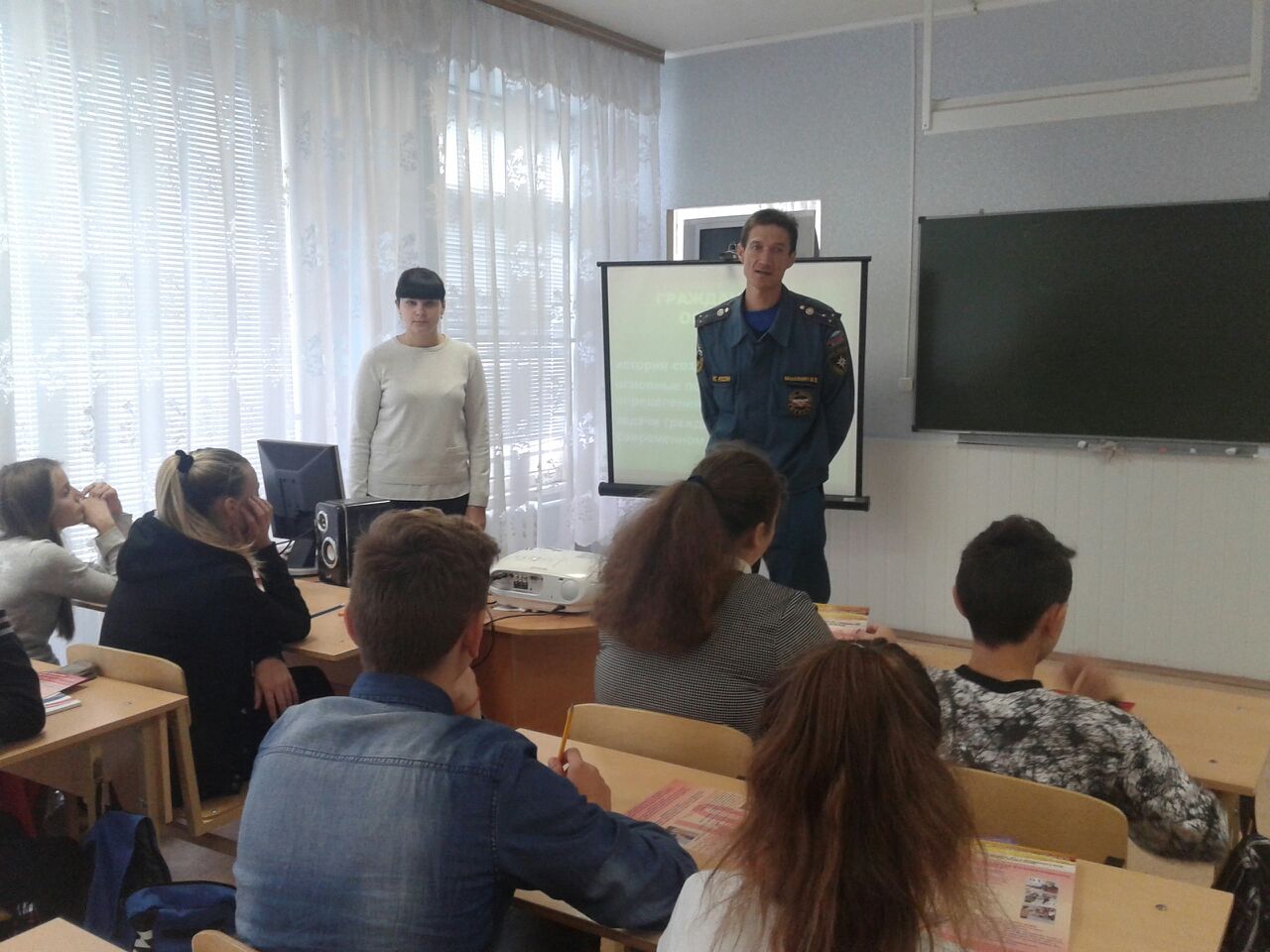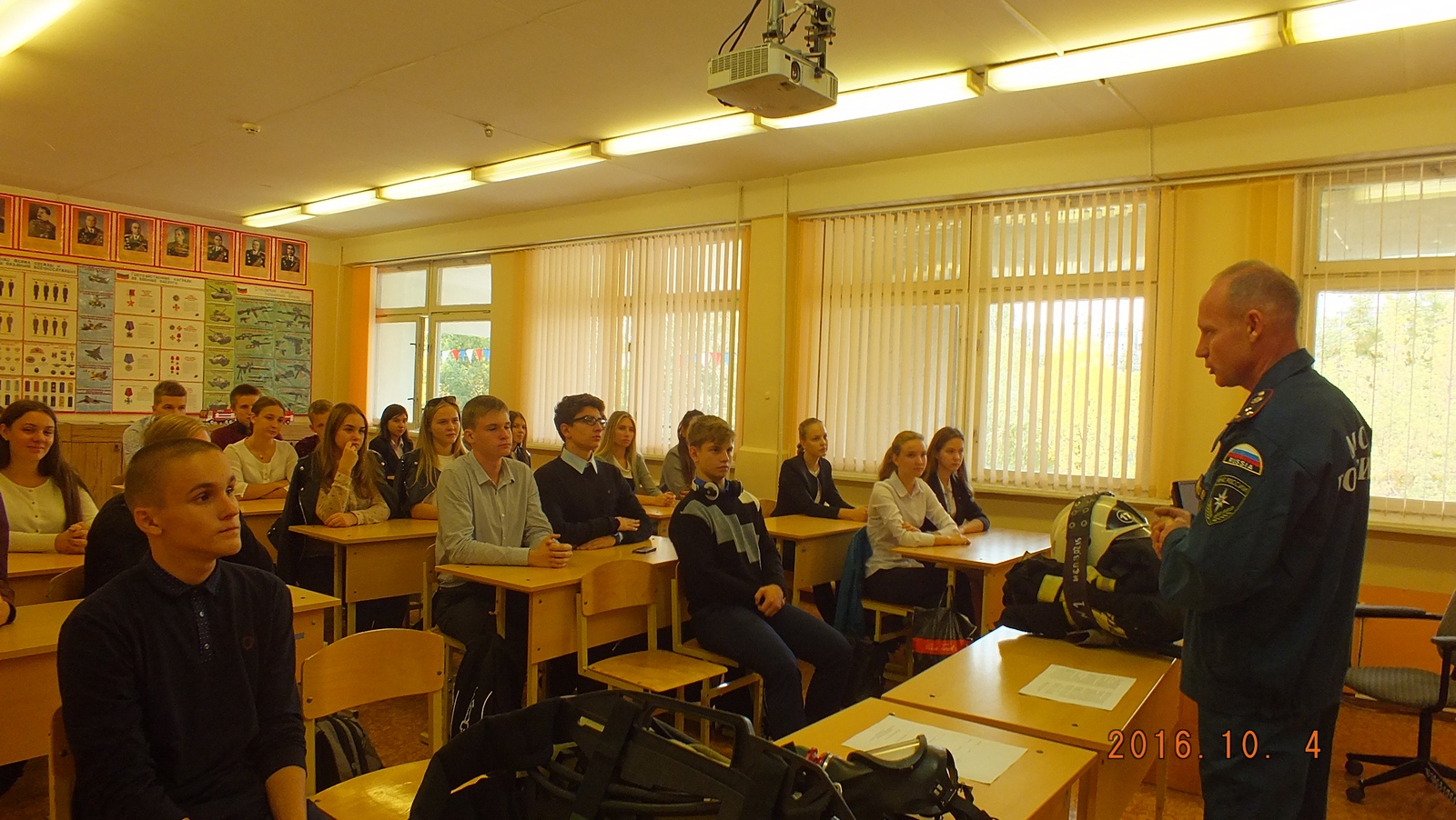 На уроках детям рассказали о Гражданской обороне, об истории ее образования, о её задачах. Также рассказали о современных способах и средствах защиты населения. И, так как, в состав добровольных формирований по гражданской обороне входит и противопожарная защита, то пожарные рассказали детям о своей работе и о методах защиты в случае возникновения пожара. Продемонстрированы навыки и приемы обращения с пожарно-техническим вооружением, показали фильм о буднях пожарной охраны и спасателей. Всем участникам урока была роздана наглядная агитация противопожарного характера. На уроках присутствовало около 2600 человек.
