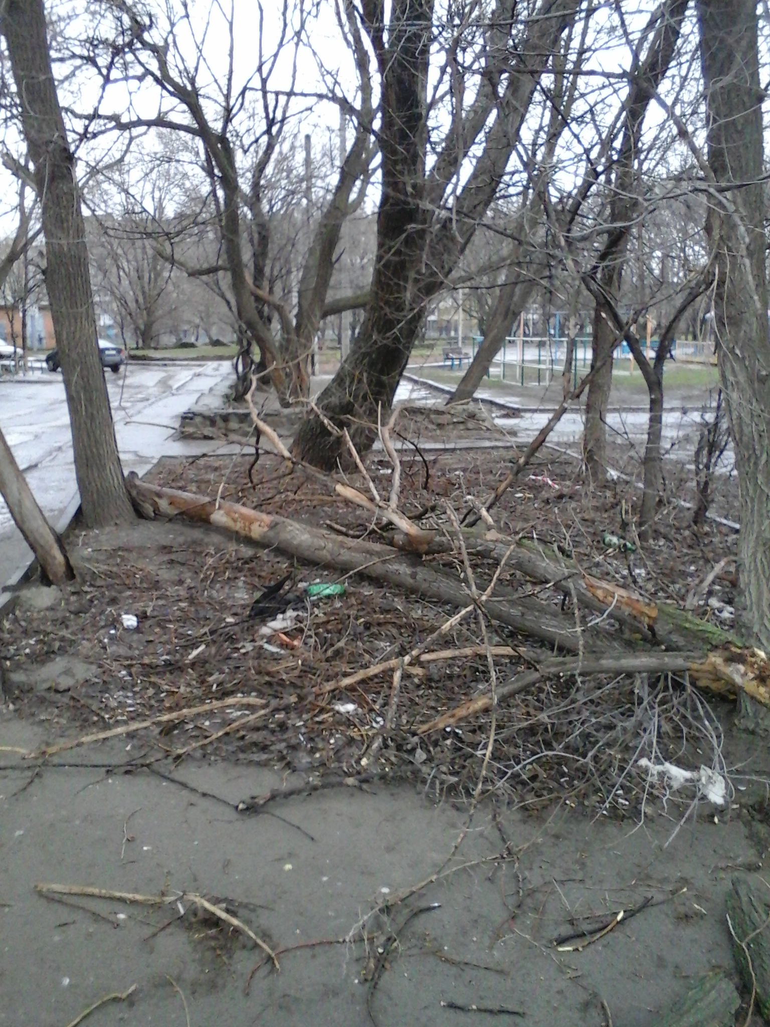 В Дубравушке много поломанных деревье, а одно вырвано с коренем.