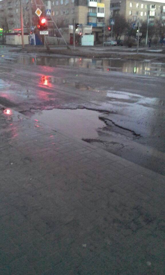 Доброе утро. Вот такая подводная яма на ул. М.Горького в районе с пересечением ул. 30 лет Победы возле остановки.