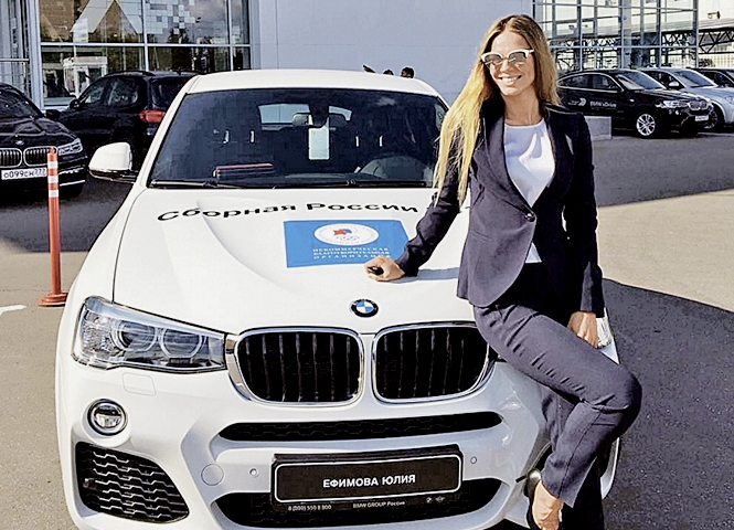 Сегодня на автомобильном аукционе CarPrice в Москве появился автомобиль, принадлежащий Юлии Ефимовой. Чемпионка хотела за подаренную государством машину скромную сумму в 3 680 000 рублей. Победитель аукциона предложил максимальную ставку в 2368000. Если хозяйка согласится, то чемпионский автомобиль нашёл нового владельца. Такой же авто в автосалонах стоит около 3 000 000.