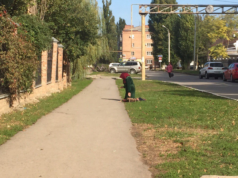 так и не понял, толи она молилась, толи просила денег...Картина жуткая немного...
