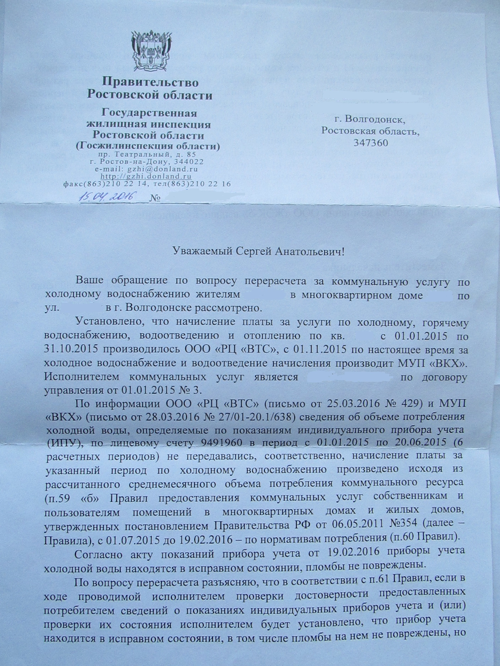 После отказа мне пришлось искать правду в Жил инспекции, и я её там нашёл. Когда я показал в Уп.комп ответ с жил инспекции мне сразу сделали перерасчёт.