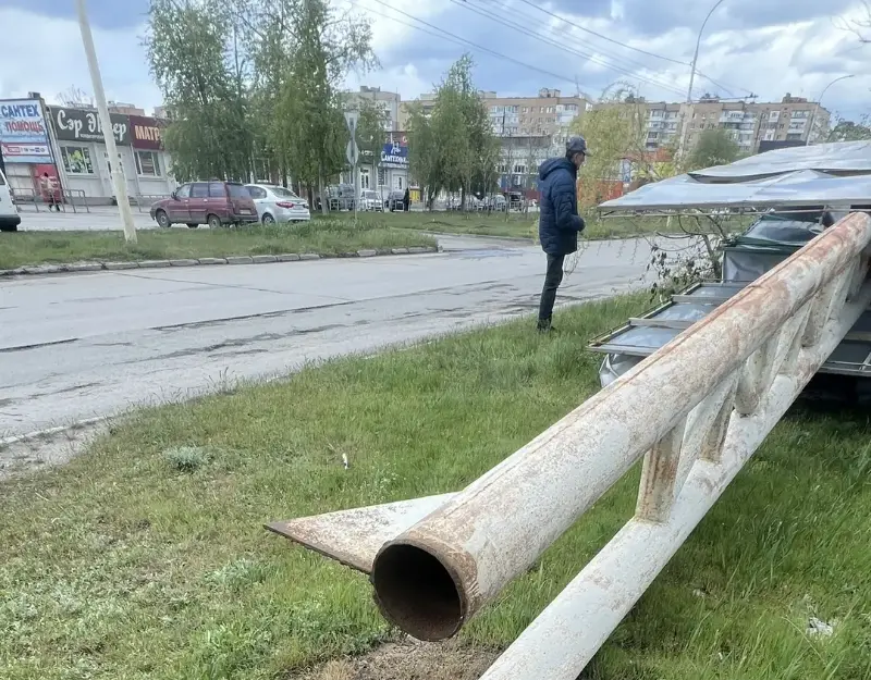На улице Королева огромный рекламный щит не выдержал натиска и рухнул на землю. Глядя на место происшествия, понимаешь: это был не просто форс-мажор, а закономерность. На кадрах с места событий отчетливо видно, что конструкция была установлена, мягко говоря, некачественно, что и сделало её легкой мишенью для ветра.