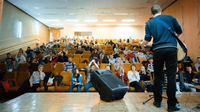 Вот и в ДК её не слышат, говорят: «Ай, да они не умеют играть, фигня какая-то». И дают им на всё про всё, раз в квартал на отчётный концерт — всего два часа. Вы думаете, это потому что график плотный и всё расписано поминутно? Отнюдь! Малый зал ДК по большей части пустует. Ну и что вам, жалко что ли раз в три месяца выделить рокерам не два, а четыре часа?