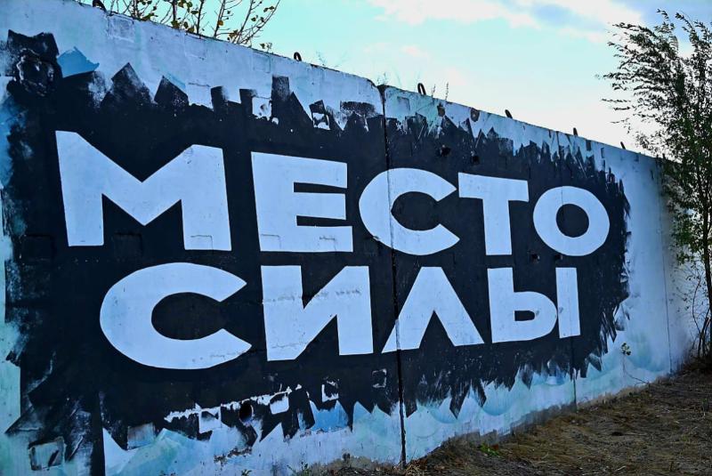 «Место силы» на набережной в квартале В-9 становится красочнее и ярче. Один из авторов масштабных картин - Владимир завершил свои муралы – надпись «Место силы» и фотозону.