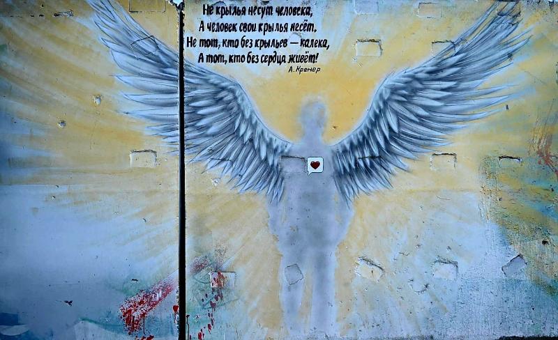 Мурал, созданный руками воспитанников военно-патриотического клуба Волгодонска "Атаман"