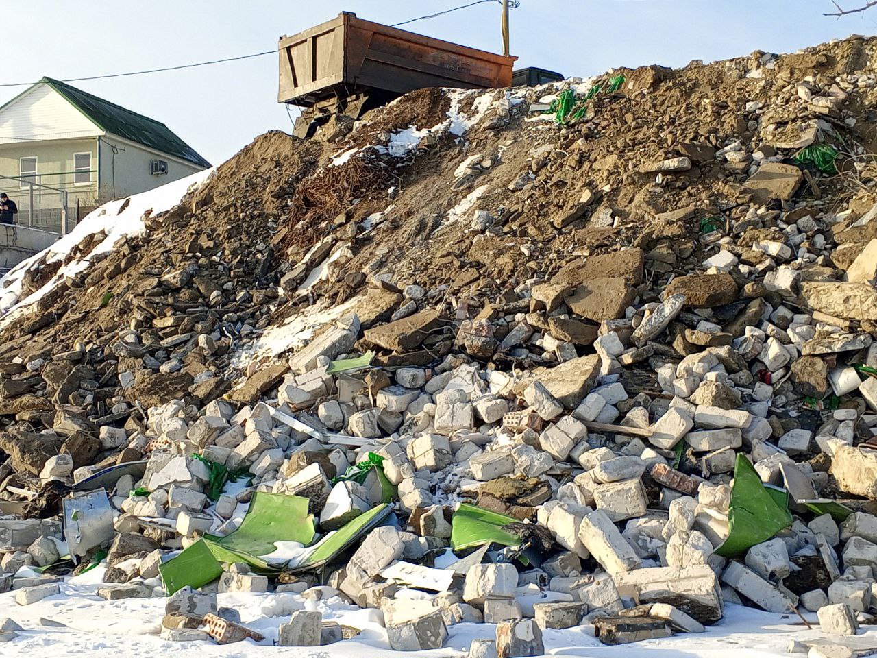 Мусор и бетонный бой за берег котлована завозят самосвалами. По словам местных жителей, работами руководит владелец земельного участка, примыкающего к берегу котлована. Обращение в полицию результата не дало, а гора строительного отхода на берегу нерестового водоёма продолжает расти с каждым днем.