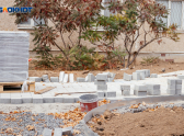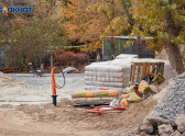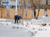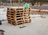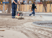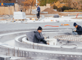 Тротуарная плитка сменяется щебенкой и дорожной пылью. Чем ближе к одиннадцатой школе, тем активнее работы. Гудит техника - идет завершающая фаза установки плоскостного фонтана. Подрядчик утверждает, что на объекте ежедневно задействованы 24 человека.