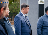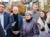 Свой пеший путь под объективами камер делегация начала от входной арки в сквер. Ее реконструкция еще не завершена. Зато уложена тротуарная плитка и очерчены бордюры. По словам подрядчика, вместо травы на газонах будет высажен можжевельник.