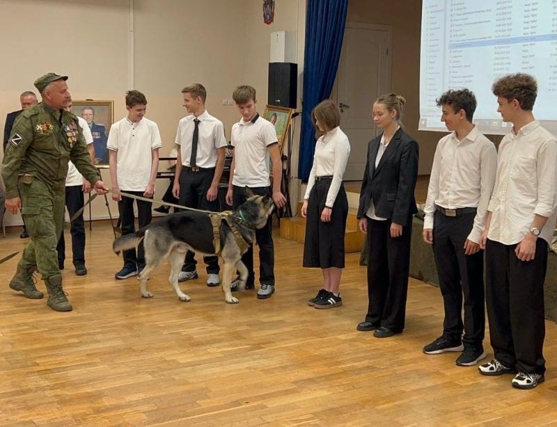 Для учеников Донской реальной гимназии № 62 организовали мероприятие с участием добровольца СВО, бойца 17-го Донского казачьего полка имени Бакланова, военного кинолога Андрея Мухина.