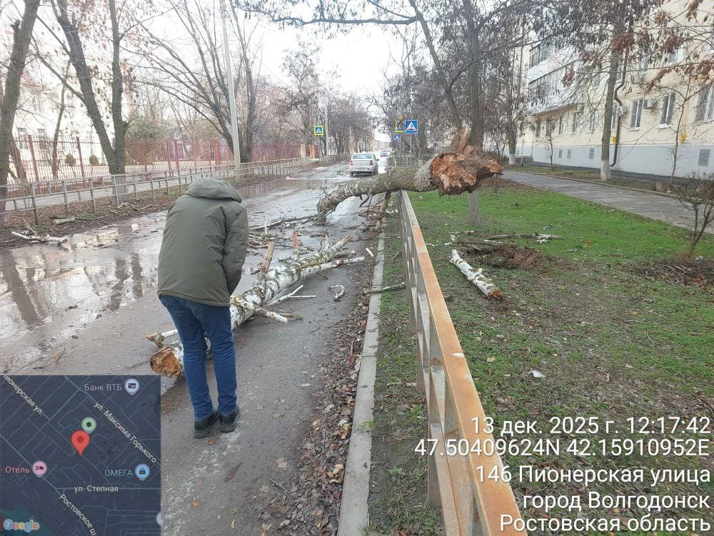 Кроме того, 13 декабря 2025 года на территории города произошло падение дерева на проезжую часть в районе дома 146 по улице Пионерской. Сотрудники производственного отдела МКУ «ДСиГХ» оперативно провели работы по распиловке дерева для обеспечения беспрепятственного проезда автомобилей. В ближайшее время дерево будет вывезено Департаментом городского хозяйства.