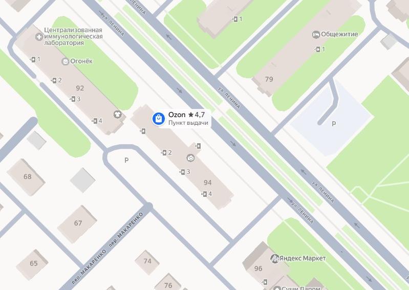 Рядом с ЗАГСом на улице Ленина находится один из «старейших» пунктов выдачи товаров OZON.