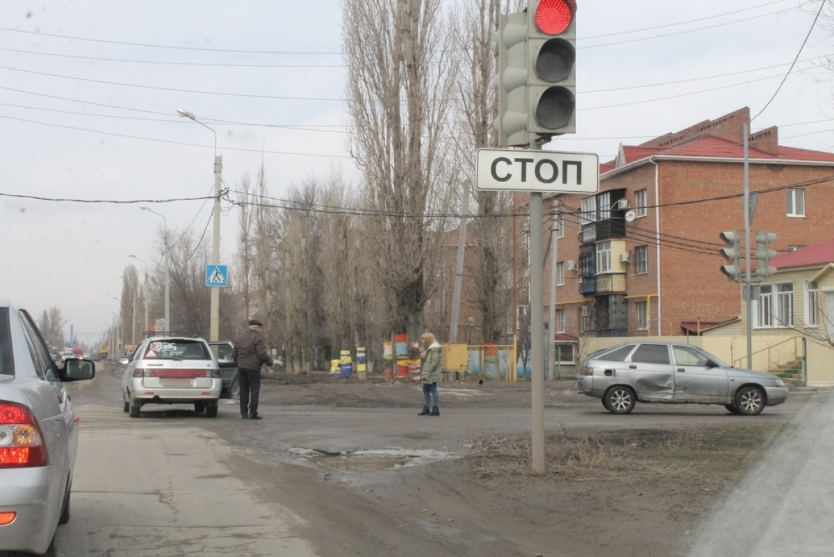 Два серебристых «ВАЗа» не поделили дорогу на светофоре в Волгодонске