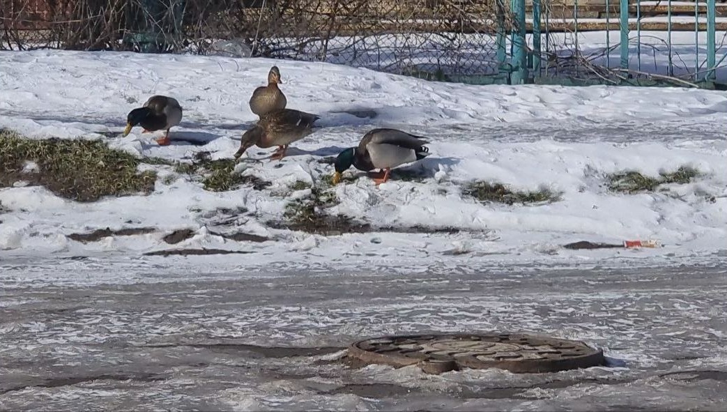 11 февраля парочку уток заметили рядом с детским садом «Парус» в микрорайоне В-8. Два селезня и две уточки искали пищу среди мерзлого газона. Не так давно похожих уток заметили и рядом с магазином комфорт на улице Маршала Кошевого.