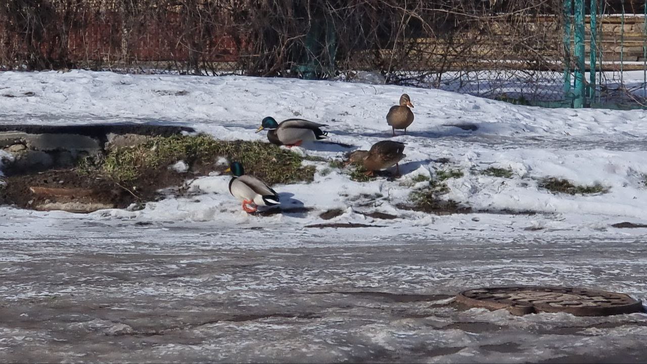 В город уток прогнали морозы. Водохранилище замерзло, и птицы откочевали вглубь городской застройки в поисках пищи.