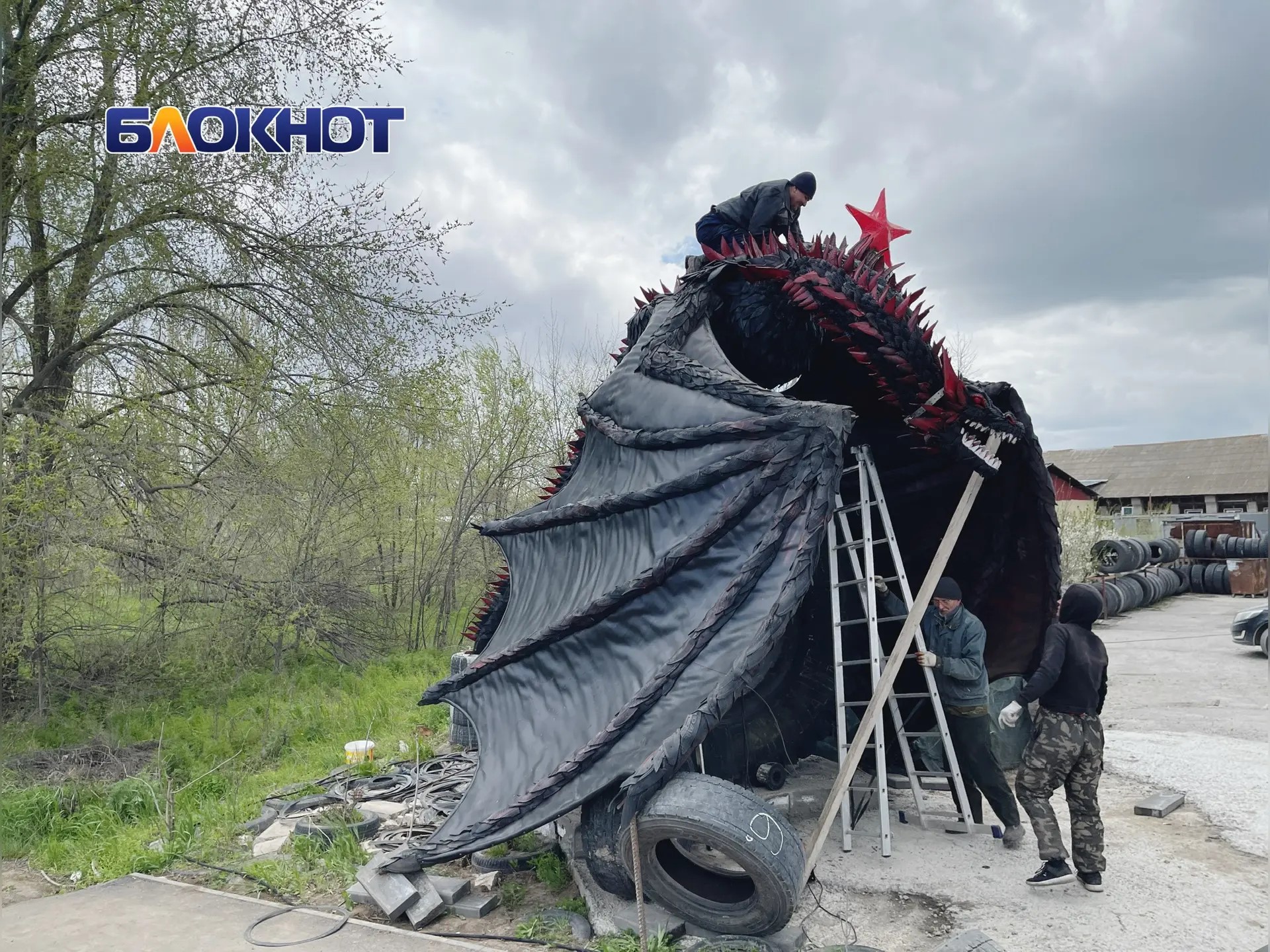 По словам Вячеслава, на изготовление резинового героя ушло полгода. Высота дракона около 6 метров. По счету арт-объект из резины у Вячеслава уже пятый.