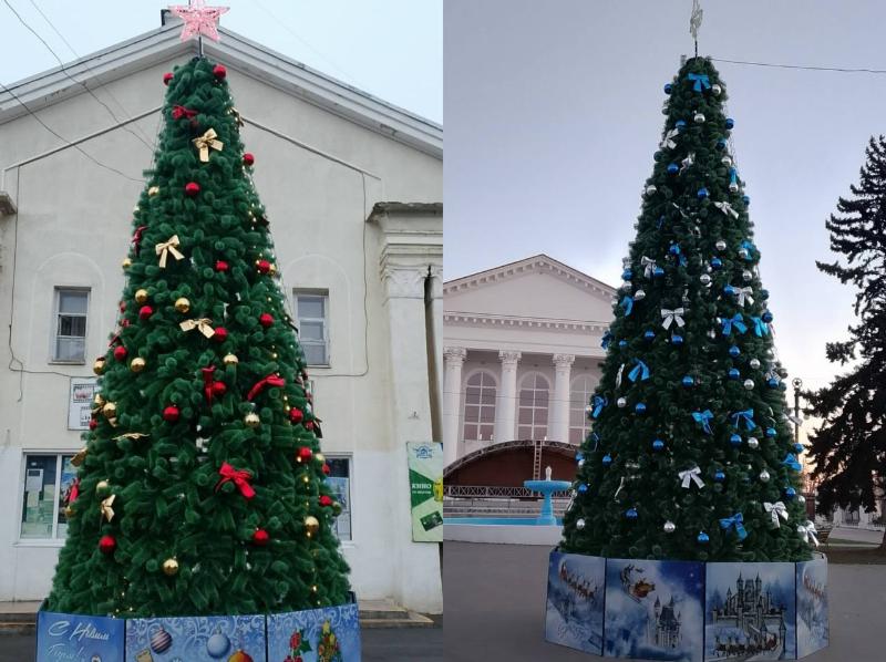 Отметим, что новогодние елки Цимлянска отличаются нарядами, которые выполнены в разных цветовых решениях.