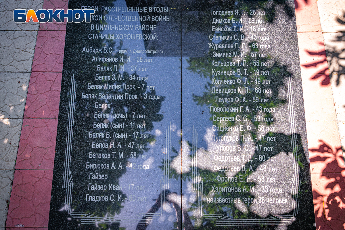 В станице Хорошевской, возникшей после 1949 года на месте переселенной на место современного города Цимлянска станицы Цимлянской, война до сих пор дает о себе знать.