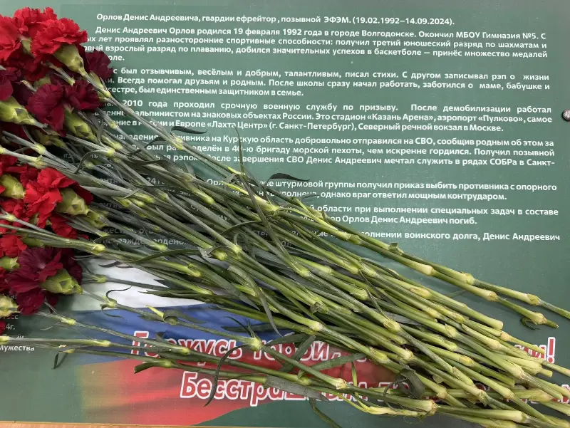 Но не только в памяти родной школы герой Денис Орлов будет жить вечно. Отныне его имя золотыми буквами вплетено в общую книгу памяти нашего города. Он встал в один строй с теми, кто в разные века защищал родную землю, пополнив ряды «Бессмертного полка» героев СВО. Для Волгодонска позывной «ЭФЭМ» станет символом того, что мужество не имеет возраста, а настоящая любовь к Родине измеряется не словами, а поступками. И пока над Доном встает солнце, пока звучат в этих стенах детские голоса, Денис Орлов будет жить — в памяти тех, кто его знал, в рассказах учителей и в каждом мирном рассвете, который он подарил нам всем ценою собственной жизни.