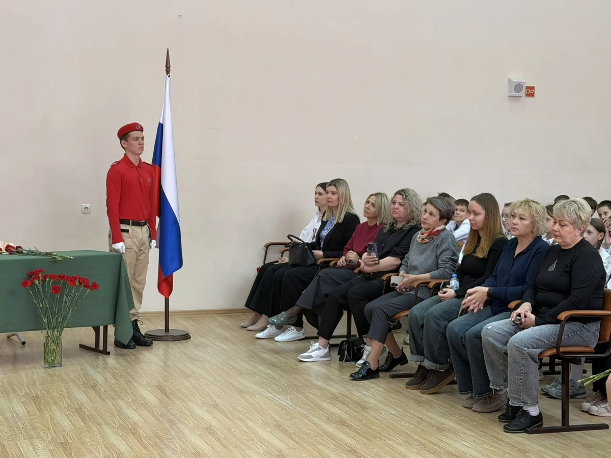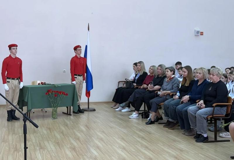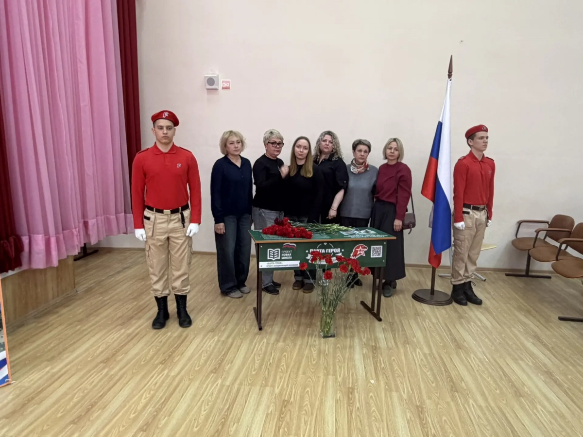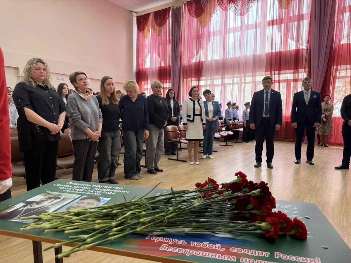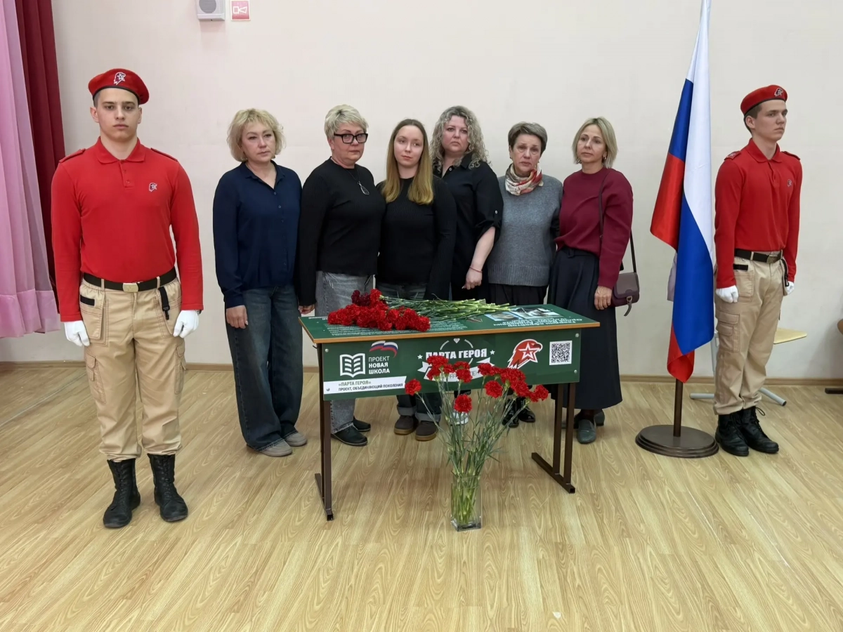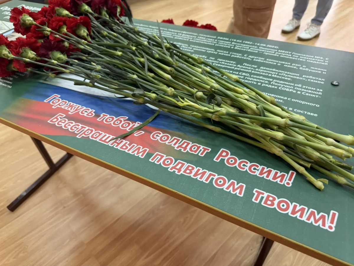 Директор школы Ирина Усова, едва сдерживая волнение, обратилась к семье погибшего, пообещав, что школа станет живым хранителем подвига их сына: