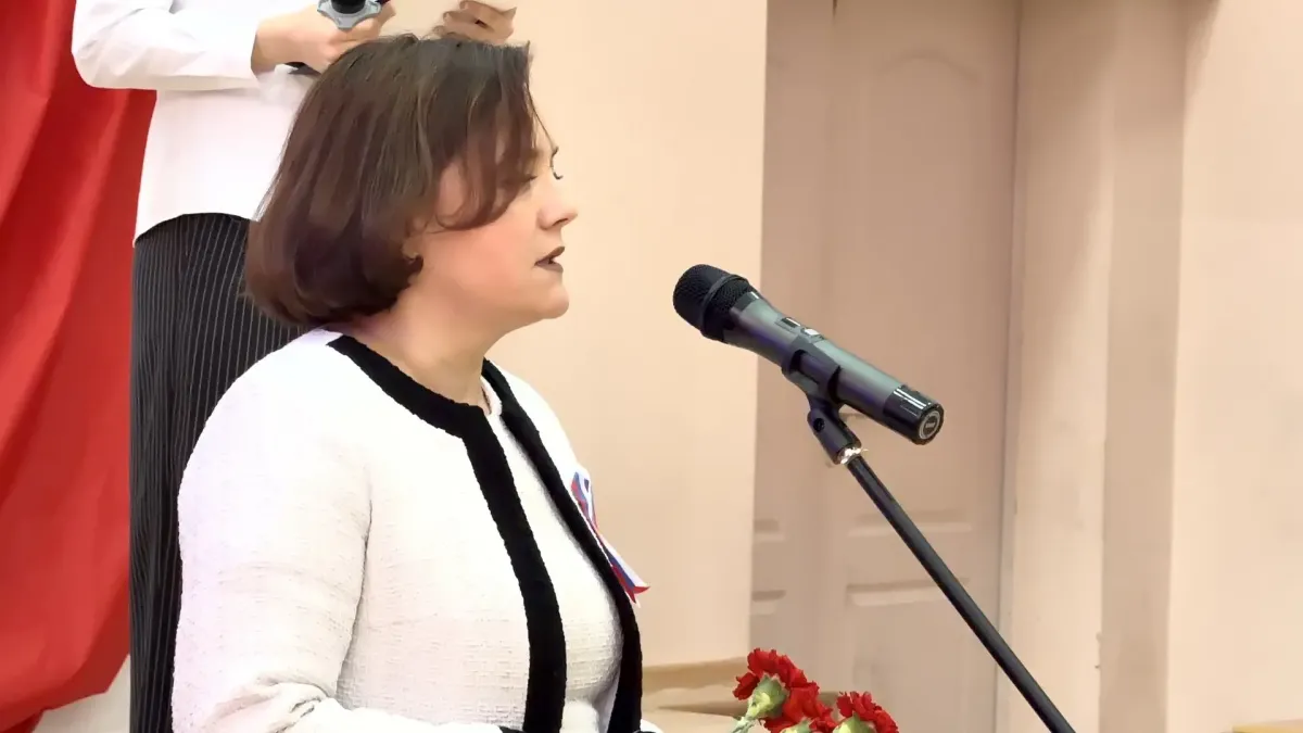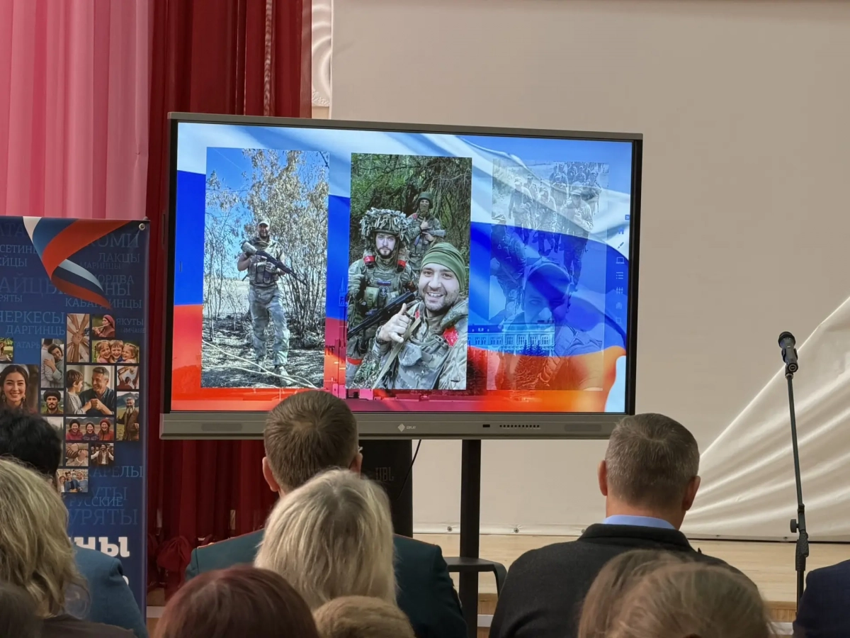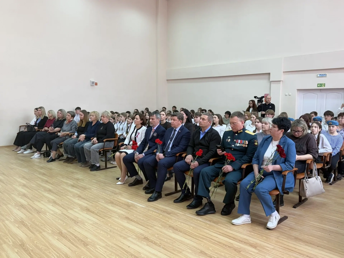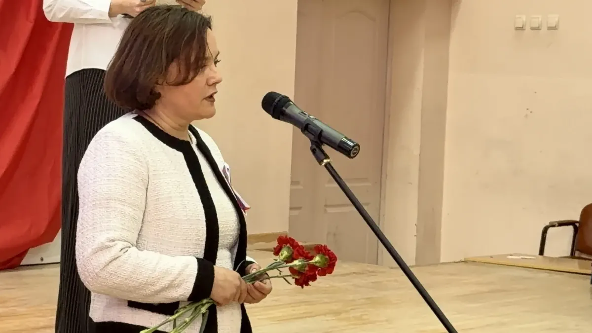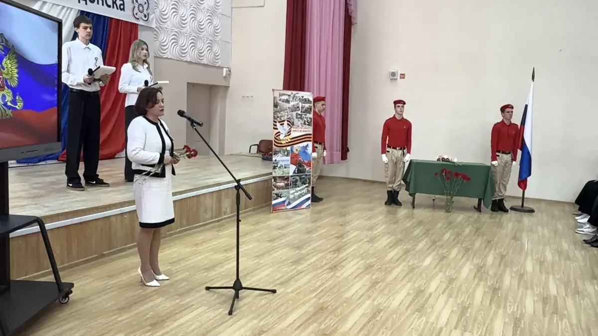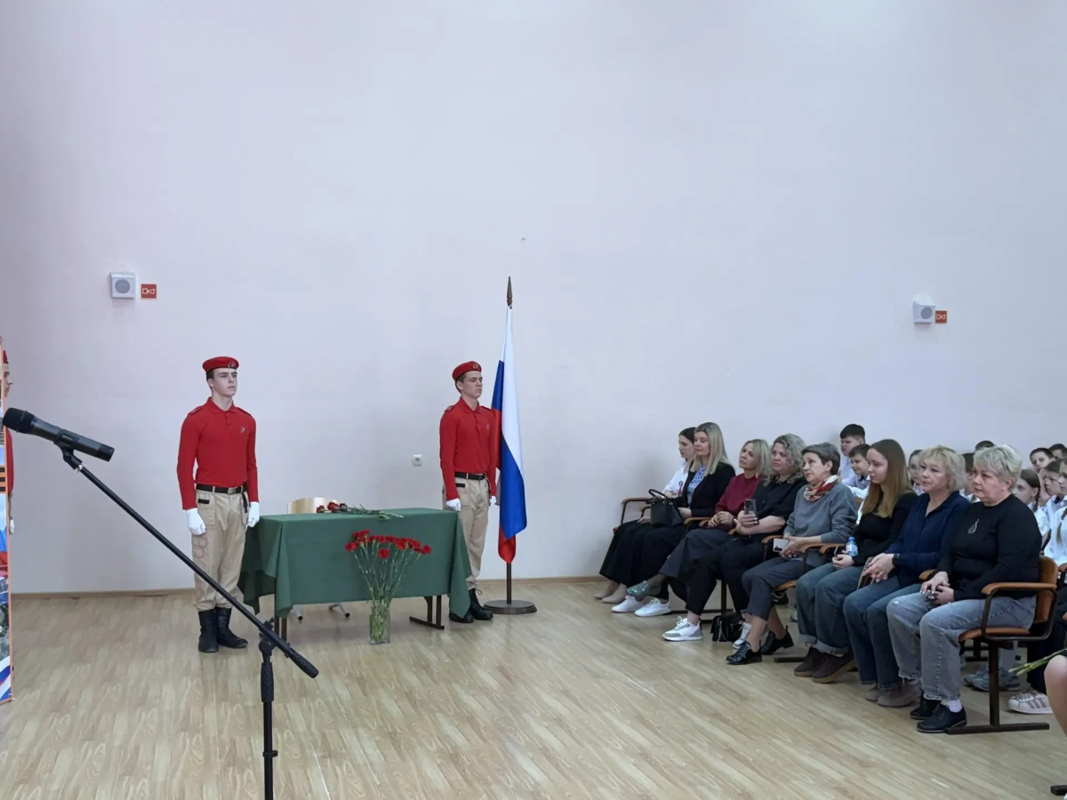 Директор школы Ирина Усова, едва сдерживая волнение, обратилась к семье погибшего, пообещав, что школа станет живым хранителем подвига их сына: