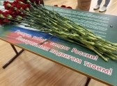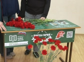 Под стук метронома зал замер в минуте молчания. А затем — алые гвоздики на парту возложили гости мероприятия и близкие Дениса Орлова.