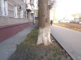 Теперь дождевая вода из-за отсутствия стока стекает с тротуарной плитки прямо к основанию домов №92 по улице Морской и №71 по улице 50 лет СССР.