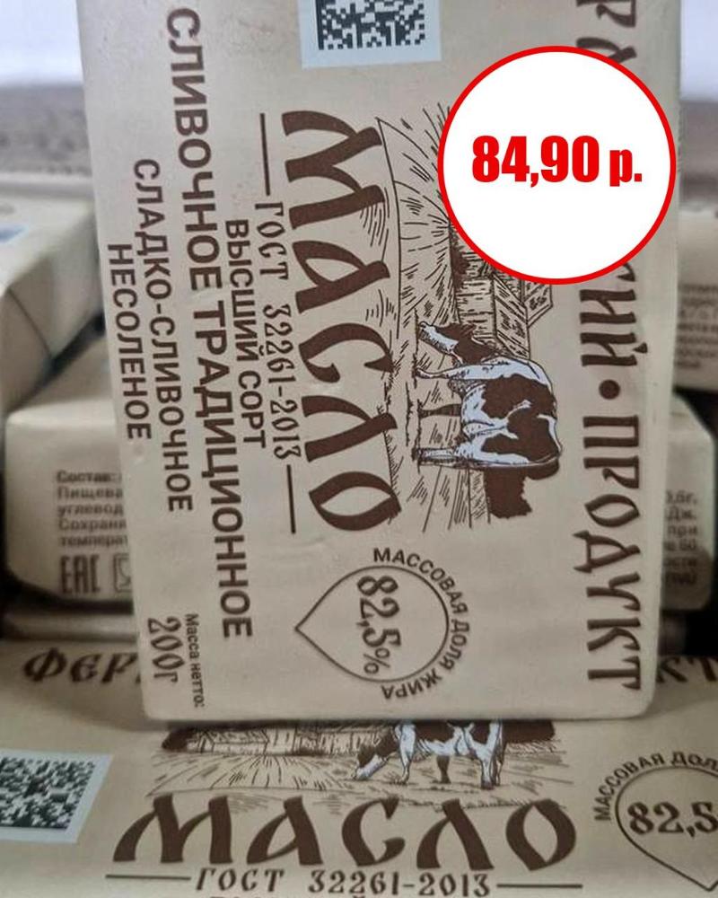 - Масло сливочное Фермерский продукт 82,5% 200гр - 84,90 рублей;