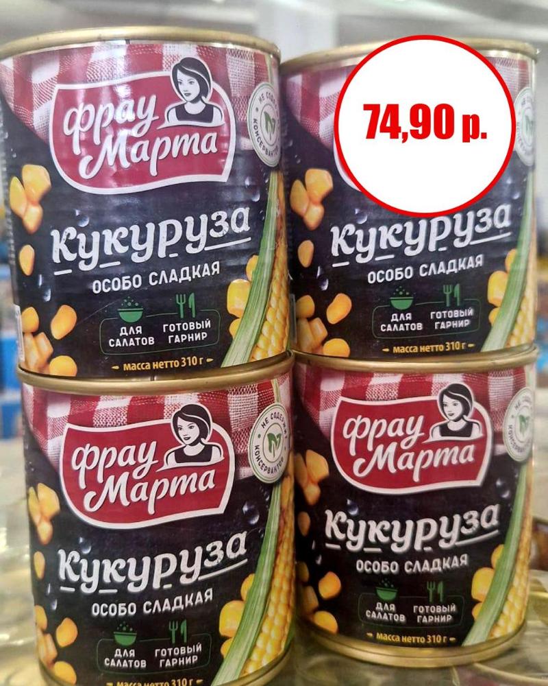 Кукуруза «Фрау Марта» 310 гр - 74,90 рублей;