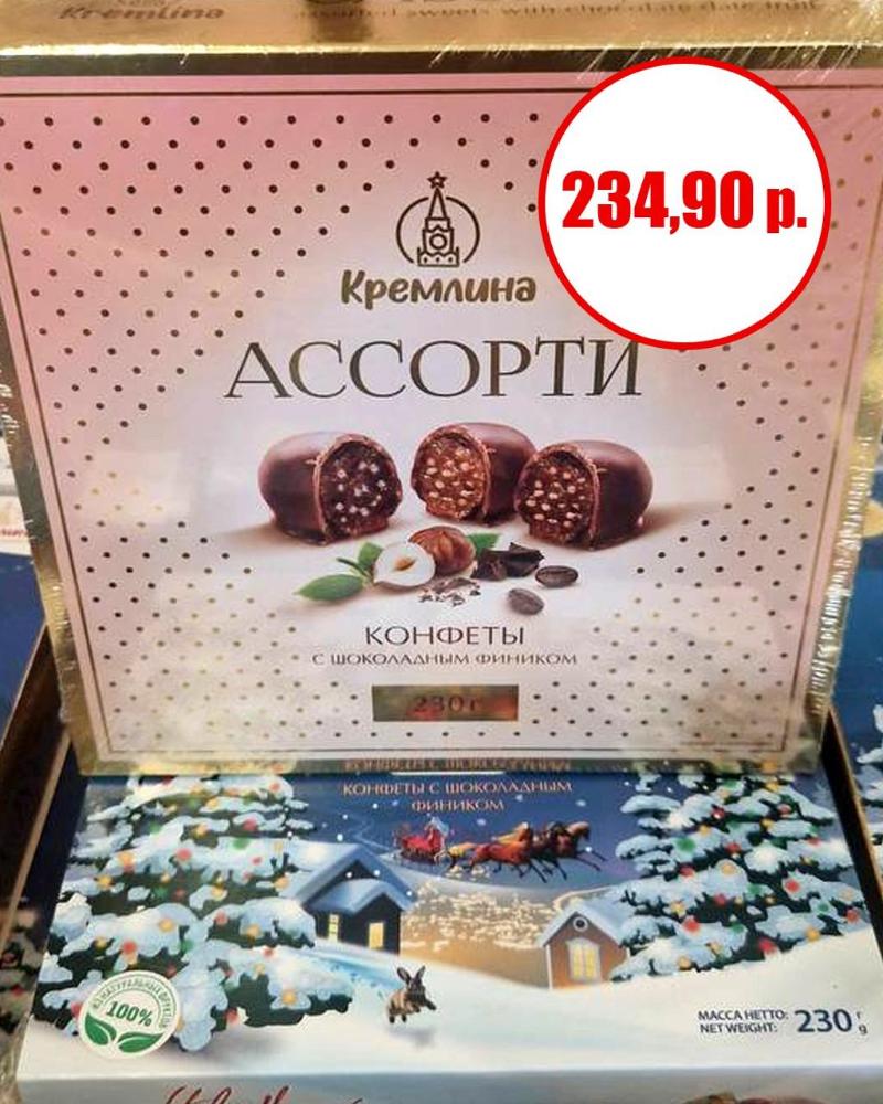 - Набор конфет «Ассорти» 230гр - 234,90 рублей;