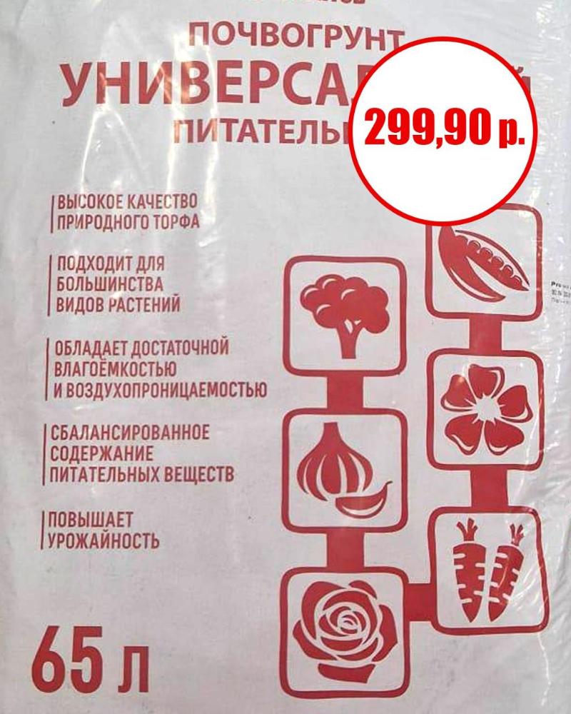 Почвогрунт «Универсальный питательный» 65л - 299,90 рублей;