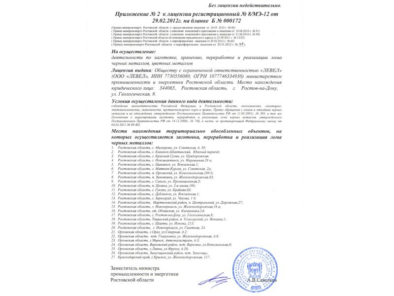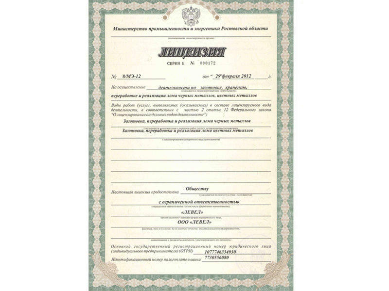 Лом принимается официально, компания ООО «ЛЕВЕЛ» имеет лицензию на данный вид деятельности.