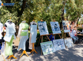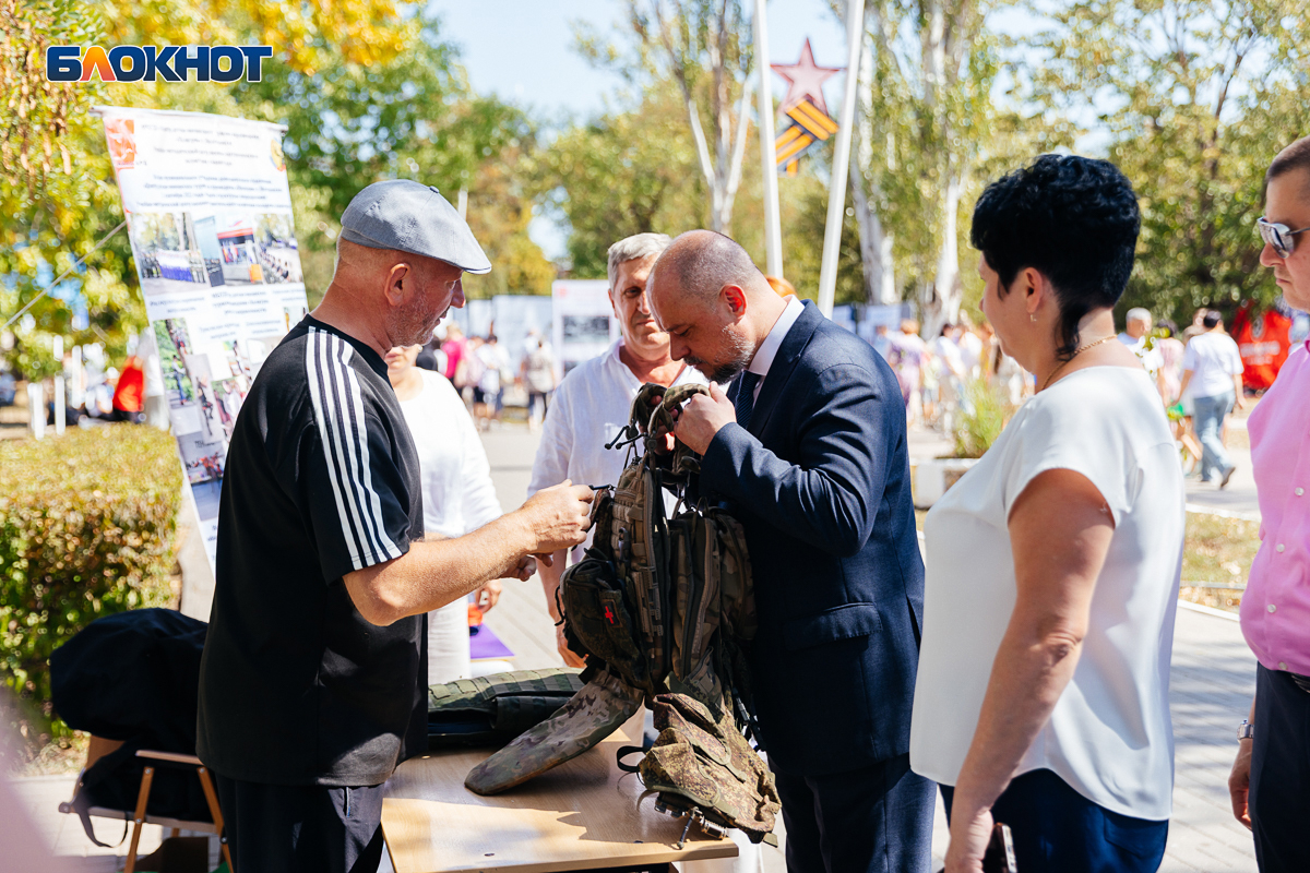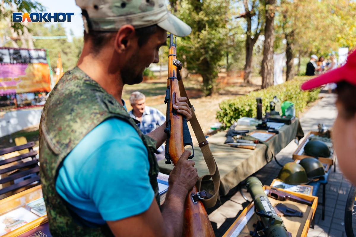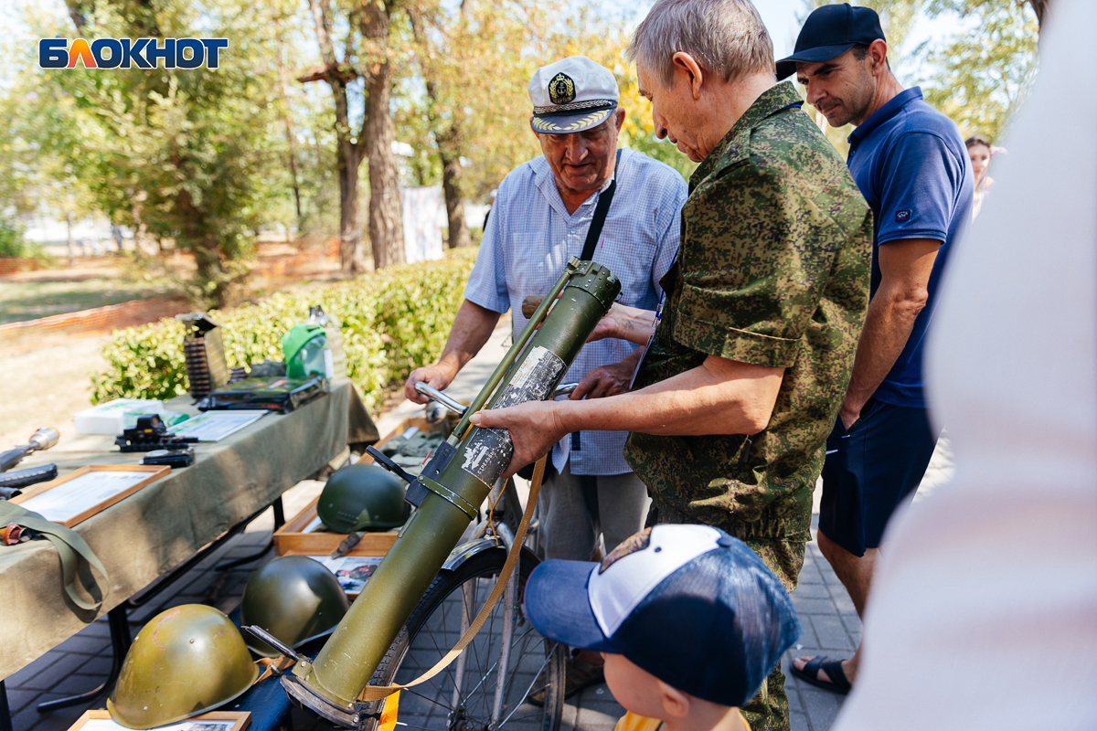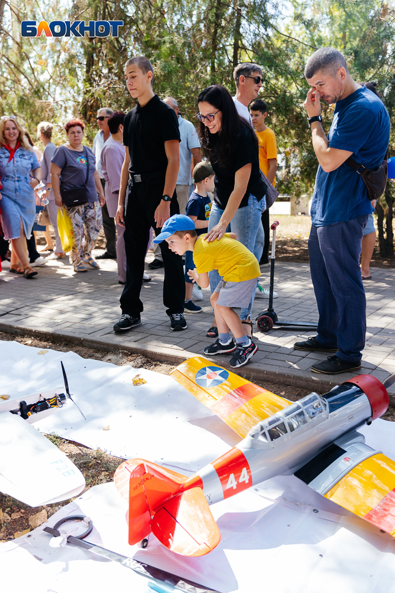 Центром праздника стал парк «Победы». Исходя из принципа проведения всех общественных мероприятий в Волгодонске – более 50 человек в одном месте не собирать, праздничные площадки были построены по тематическим видам деятельности. В одном месте парка прошел конкурс вкусных пирогов, в другом – общественники и ветераны демонтировали детям свою коллекцию оружия, включая и настоящий гранатомет, третьем - представили свои работы местные мастера. А рядом прошла выставка местного кружка авиамоделирования. Получилось все мирно и даже камерно.